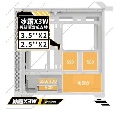 长城冰霜X3W白色电脑机箱(M-ATX/360水冷位/U3/9风扇位/磁吸翻门/五槽PCI/兼容4080)