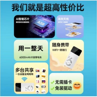首页 > 手机配件 > 随身wifi > 随身wifi可移动无线wi-fi6免插卡【无需预存】无限制便携式4G高速随行网络通用流量2024款5GHF 6000毫安大电池+续航翻倍全国通用
