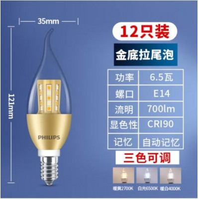 首页 > 灯饰照明 > 其他灯具 > e14螺口led灯泡三色变光超亮蜡烛灯泡拉尾水晶小螺口吊灯家用节能 三色变光【6.5瓦金底拉泡】12只