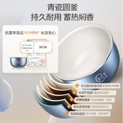 美的电饭煲电饭锅5L大容量4-5-10个人电饭锅家用青瓷圆灶内胆柴火饭智能预约多功能饭煲蛋糕煮粥煮饭锅