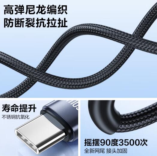 双Type-C数据线二合一PD60W充电线一拖二车载适用苹果iPhone16pro/15/14手机华为70小米笔记本ipad