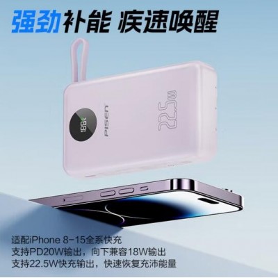 首页 > 手机配件 > 移动电源 > 充电宝自带四线22.5W快充小巧便携宿舍移动电源20000毫安大容量可上飞机适用苹果16小米华为P70紫